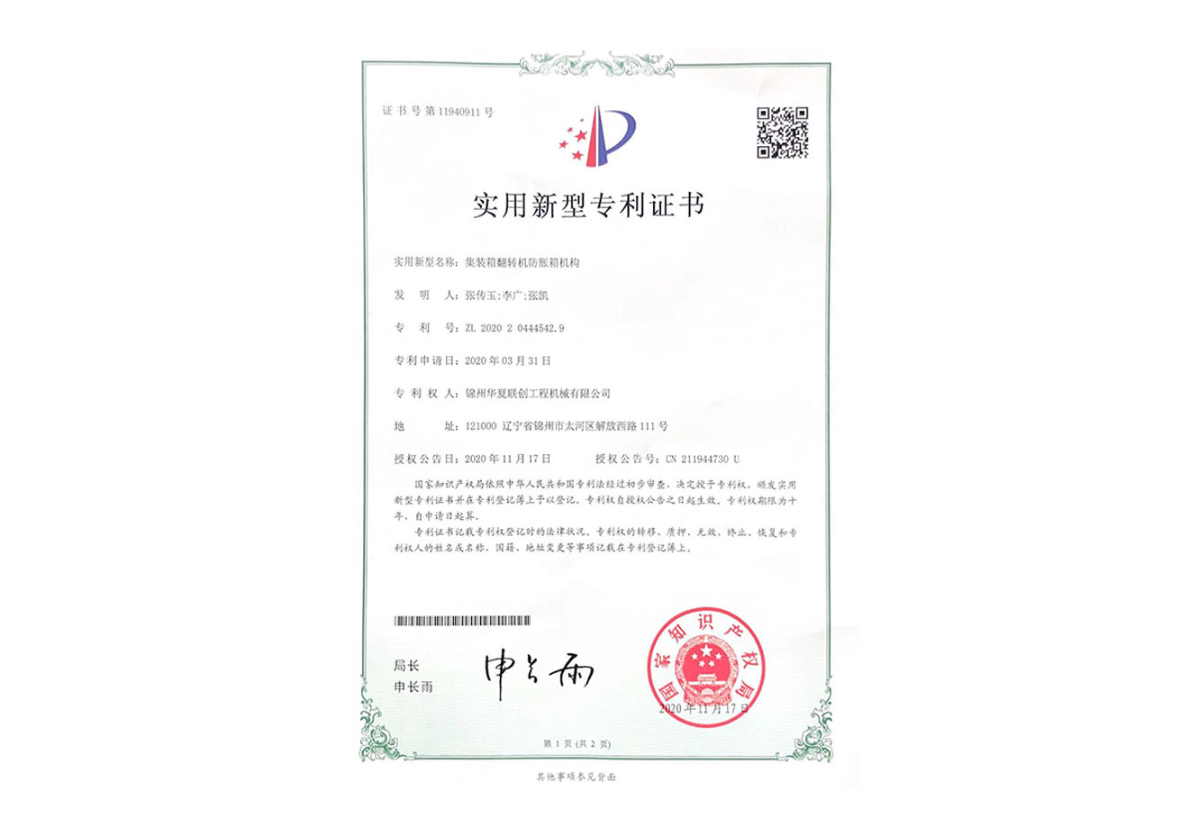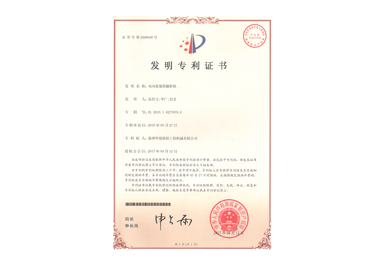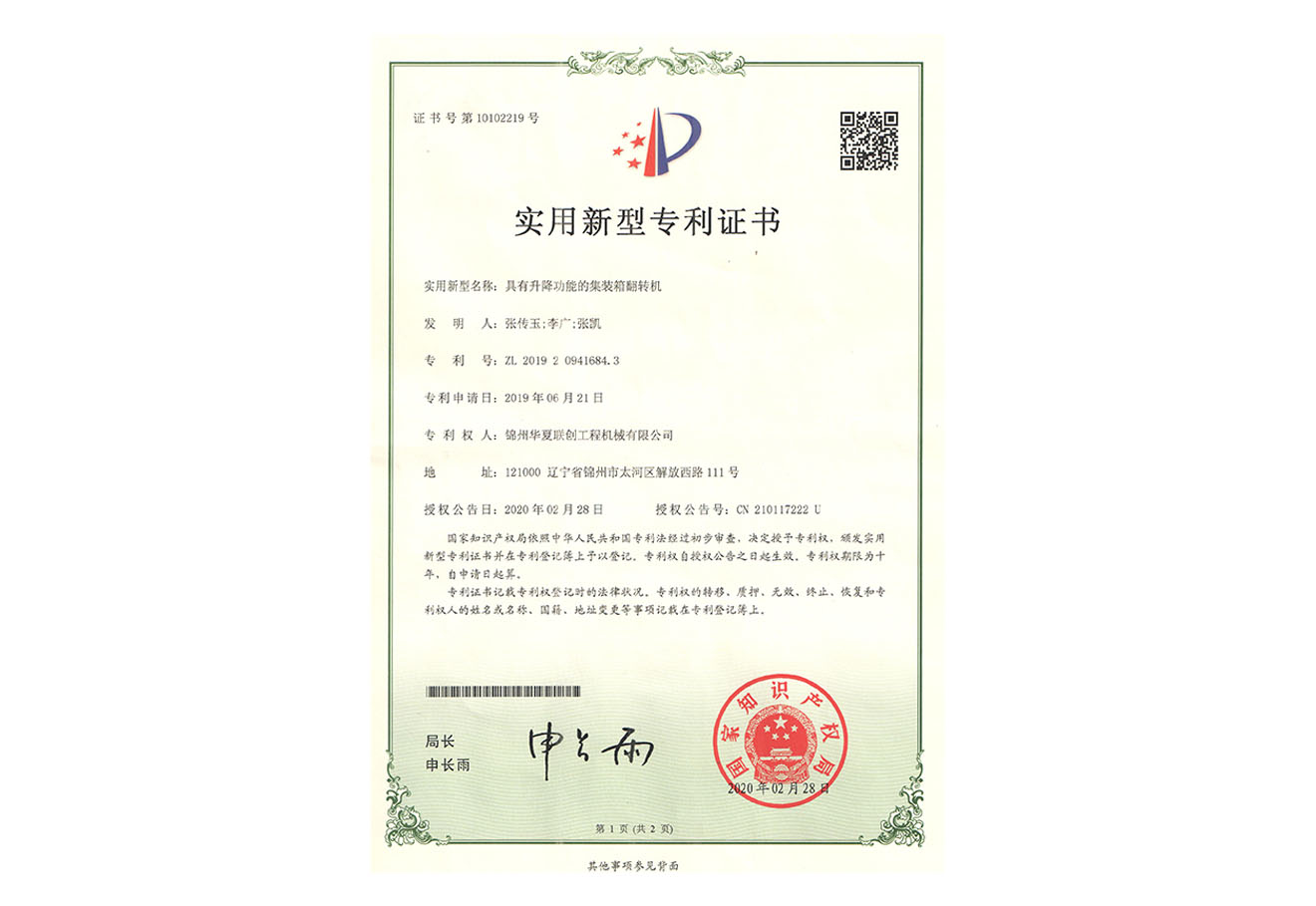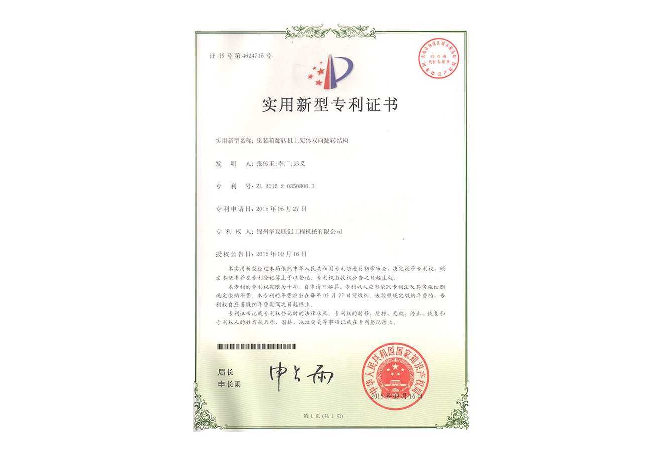 華夏聯(lián)創(chuàng)集團創(chuàng)始于2005年,憑借公司品牌優(yōu)勢、技術(shù)優(yōu)勢、人才優(yōu)勢、資金優(yōu)勢,以數(shù)十年磨一劍的博觀約取、厚積薄發(fā),自主研制生產(chǎn)具有先進水平的集裝箱翻轉(zhuǎn)機,翻轉(zhuǎn)平臺,智能化液壓翻板汽車裝卸。為用戶提供各種集裝箱裝卸設(shè)備、火車集裝箱、船舶裝卸機等自動裝卸設(shè)備。公司逐步形成了以工程機械為核心、擁有自主知識產(chǎn)權(quán)、在國內(nèi)具有一定影響力的企業(yè)。華夏聯(lián)創(chuàng)公司自成立以來,產(chǎn)品銷量持續(xù)高速增長,實現(xiàn)了跨越式發(fā)展,已經(jīng)成為行業(yè)知名品牌。